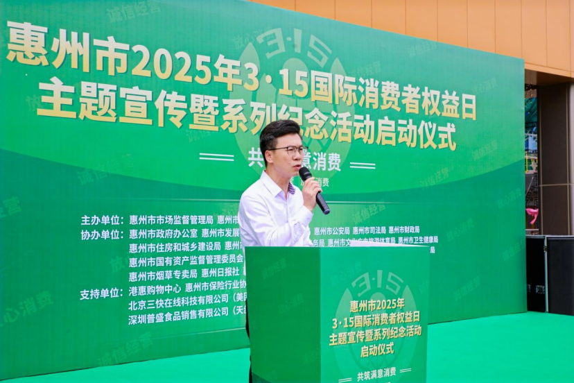 活動(dòng)以“共筑滿意消費(fèi)”為主題,聚焦消費(fèi)者權(quán)益保護(hù)、市場(chǎng)秩序規(guī)范、企業(yè)責(zé)任踐行等核心議題。啟動(dòng)儀式上,惠州市市場(chǎng)監(jiān)督管理局領(lǐng)導(dǎo)致辭:將以更加強(qiáng)烈的責(zé)任感與使命感,進(jìn)一步強(qiáng)化消費(fèi)權(quán)益保護(hù),著力營(yíng)造安全、放心的消費(fèi)環(huán)境。
