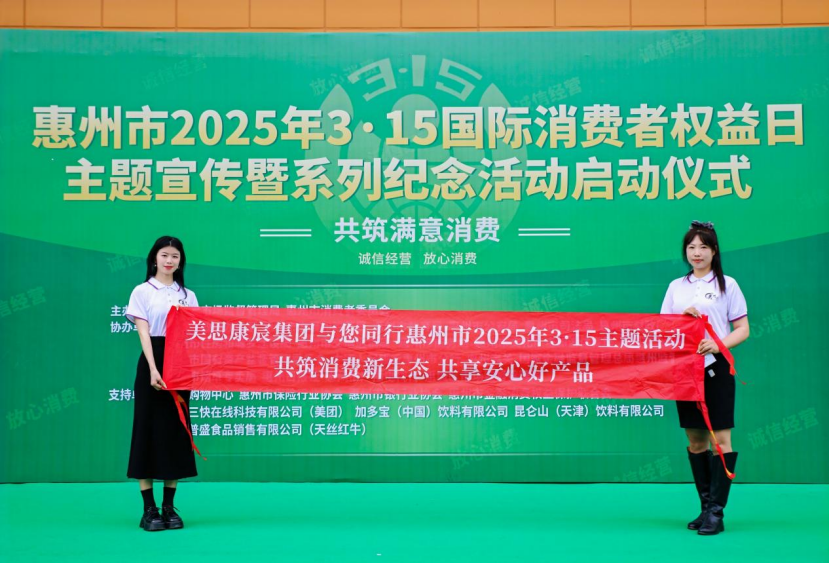 2025年3月15日上午,由惠州市市場(chǎng)監(jiān)督管理局、惠州市消費(fèi)者委員會(huì)聯(lián)合主辦的“2025年3·15國(guó)際消費(fèi)者權(quán)益日主題宣傳暨系列紀(jì)念活動(dòng)啟動(dòng)儀式”在惠城區(qū)港惠購(gòu)物中心東廣場(chǎng)隆重舉行。美思康宸集團(tuán)作為健康產(chǎn)業(yè)代表企業(yè)受邀參會(huì),與市市場(chǎng)監(jiān)督管理局、市消委會(huì)、惠城區(qū)市場(chǎng)監(jiān)督管理局等政府單位,以及行業(yè)協(xié)會(huì)、知名企業(yè)品牌、法律顧問代表等共同見證這一重要時(shí)刻。
